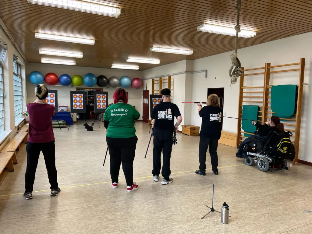Die Sonne scheint an diesem 2. März fröhlich durch die Fenster des Gesundheitsamtes Spandau in die kleine Turnhalle. Hier veranstalteten die „Peanut Hunters“ vom TSV-Spandau-1860 das erste Spaß-Blasrohr-Turnier. In freundschaftlicher Runde wurde hier in 3 Durchgängen auf 7m Distanz auf Blasrohr-Auflagen auf eine Scheibe geschossen. Sven Meinke sicherte sich mit 526 Ringen den 4. Platz bei den Herren. Karin Richter schaffte es auf 496 Ringe und damit auf den 5. Platz bei den Damen. Mit dabei waren auch Ellen Richter und Mimo Meinke. Es hat viel Spaß gemacht und wir freuen uns auf eine Wiederholung.