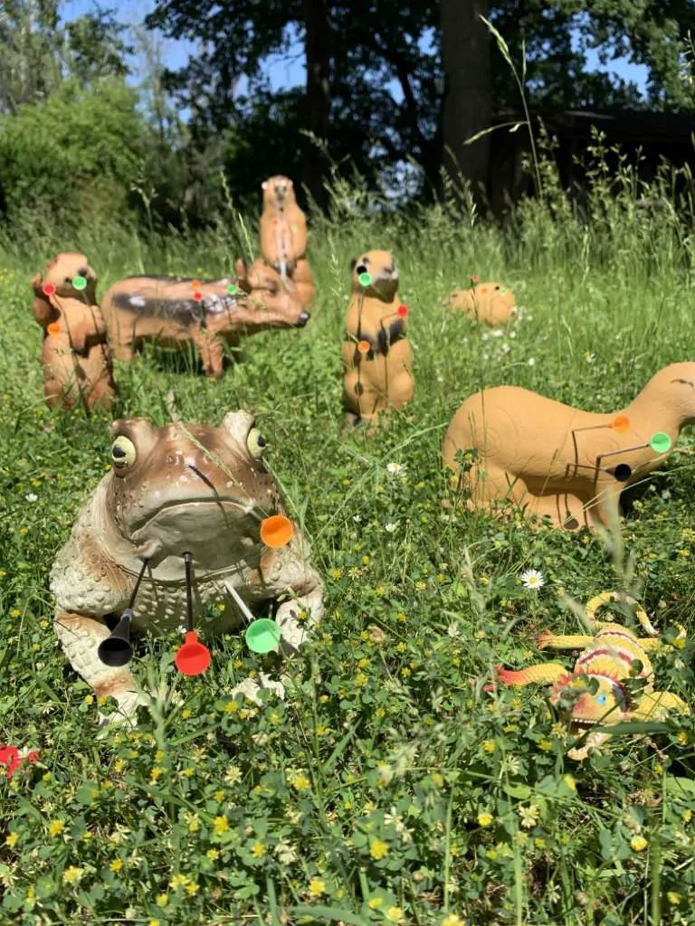 Zum Abschluss ging es durch unseren Bogensport-3D-Parcours auf „Großwild-Jagd“, der aufgrund des Terrains und der jeweiligen Ziele auch für Blasrohr-Schützen eine interessante Herausforderung darstellt.