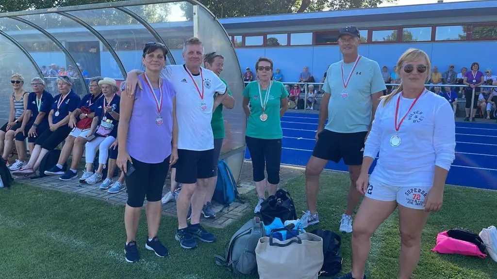 Pünktlich um 11:50 Uhr brachen 11 Teilnehmende vom Bahnhof Dallgow zum 11. Seniorensportfest nach Rathenow auf💚🤍 Verstärkt wurde die Gruppe durch Christine Hänisch, Rosita Kaufmann und Christine Noack von der Abteilung Aerobic 🤸🏼♀ sowie von Barbara Wichmann, Martina Franzen und Gabi Collet 💪🏼 Trotz des warmen Wetters wurde eine Vielzahl an Medaillen abgeräumt 🥇 und die Titelverteidigung somit gesichert 🏆 Glücklich aber erschöpft geht es nun mit vollen Taschen Richtung Heimat🏅Uns bleibt nichts anders übrig als zu sagen: Gratulation!👏🏼👏🏼
