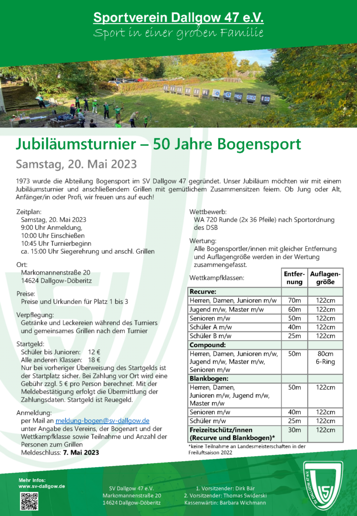 Bei Interesse schreibt uns bitte eine Mail an: bogensport@sv-dallgow.de