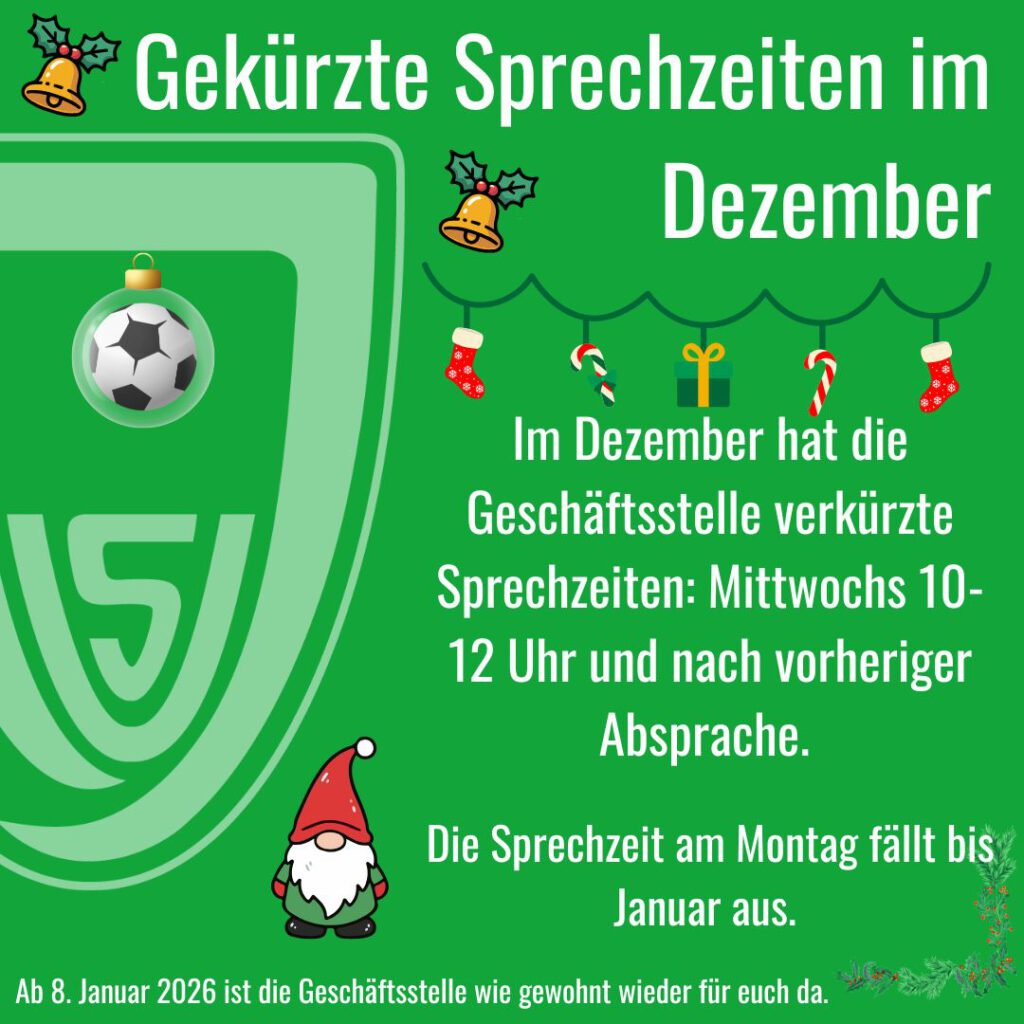 Im Dezember wird die Geschäftsstelle ihre Sprechzeiten verkürzen. Weiterhin könnt ihr Mittwochs zwischen 10 und 12 Uhr in der Wilmsstraße vorbei kommen. Die Montags-Sprechzeit fällt (nur im Dezember) weg. Diese findet erst wieder ab 08.Januar 2026 statt.